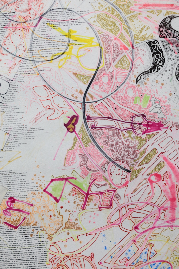 Notepad Diary 8 : spray, pen and ink on paper, 186x97cm,  2023-2025, detail