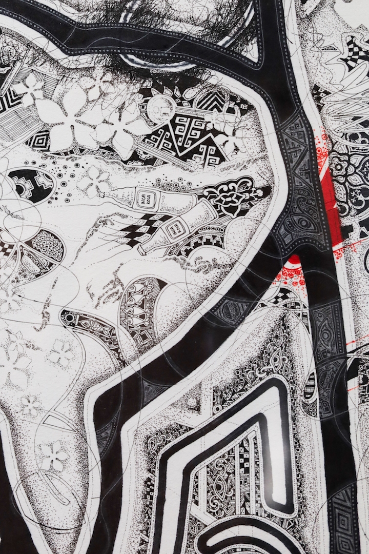 Barcode Diary 1 ( Italy ) : Collaboration with David Medalla and Josephine Turalba : paint, ink on paper, 76x56cm, 2016, detail