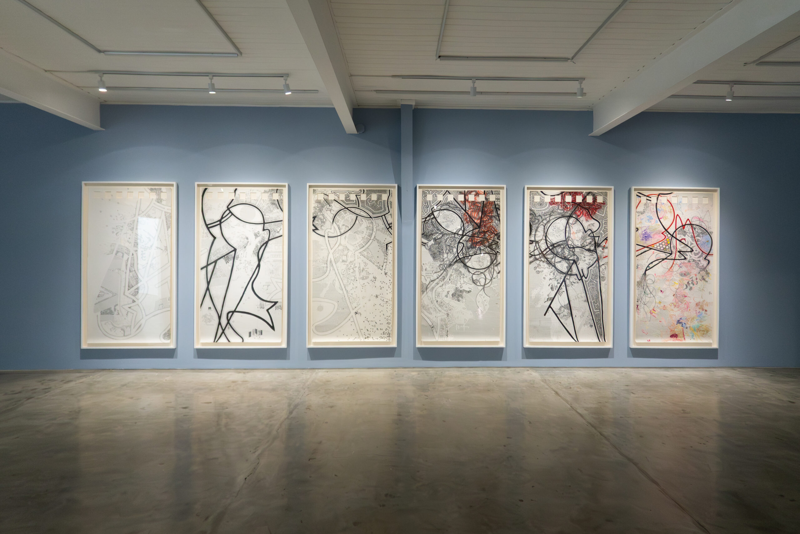 Notebook 1 : paint, ink on canvas, 548x210cm, 2023-2025, installation view