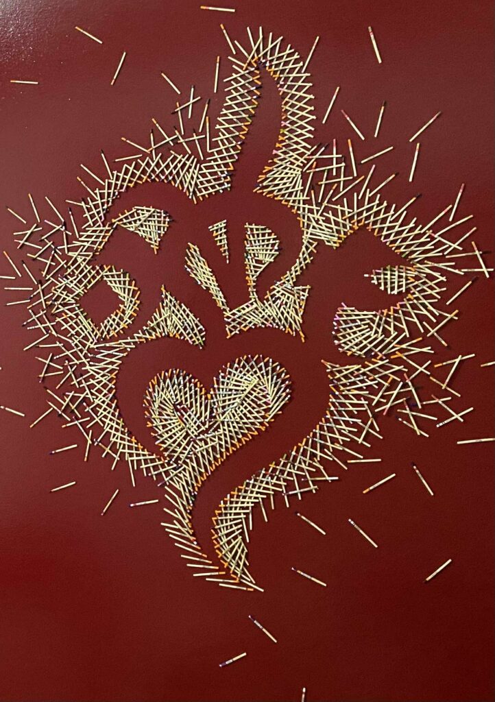 matchsticks with artists penmanship on wood, 187 cm x 127 cm ( 4ft x 6 ft ) 2013