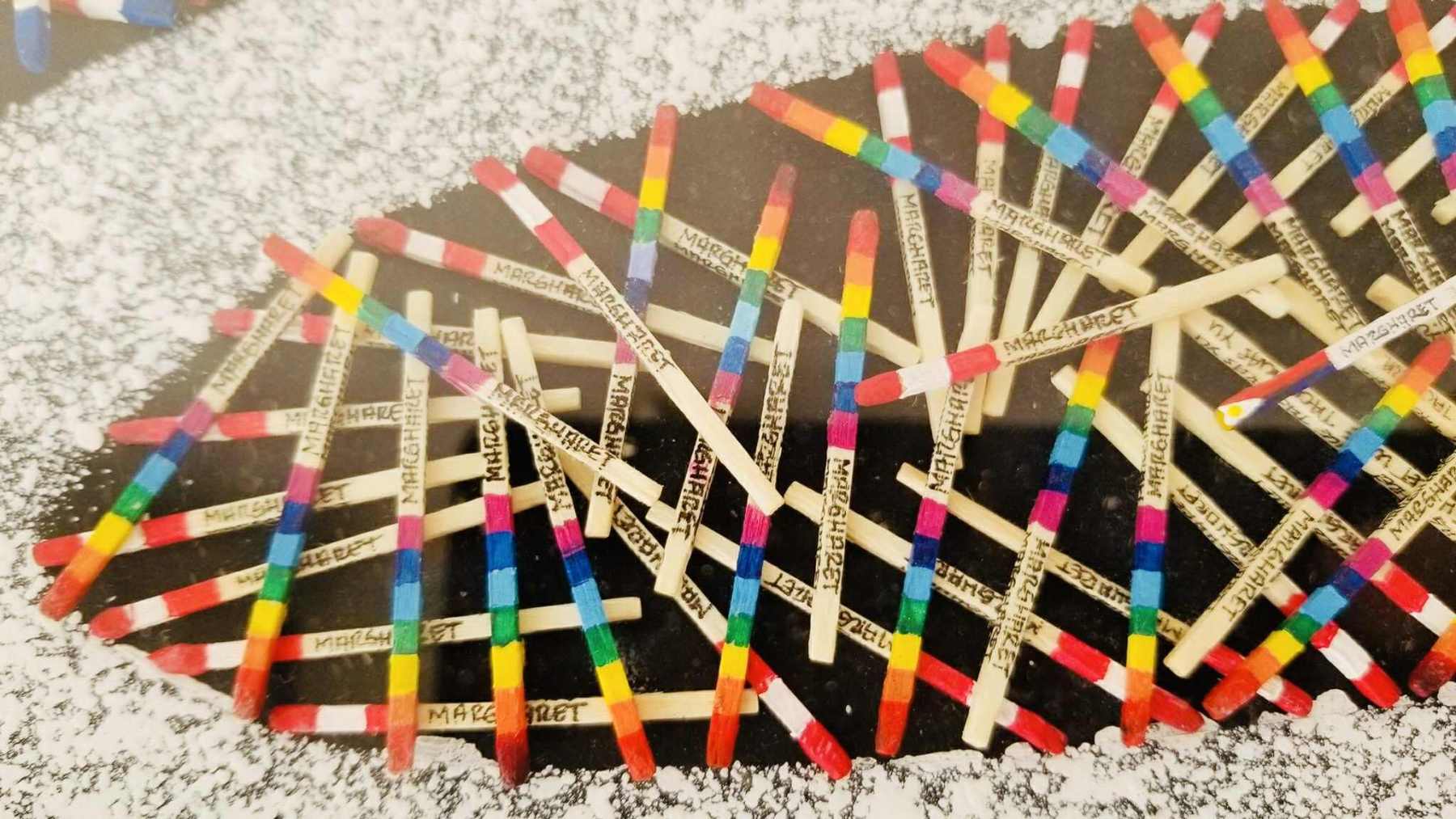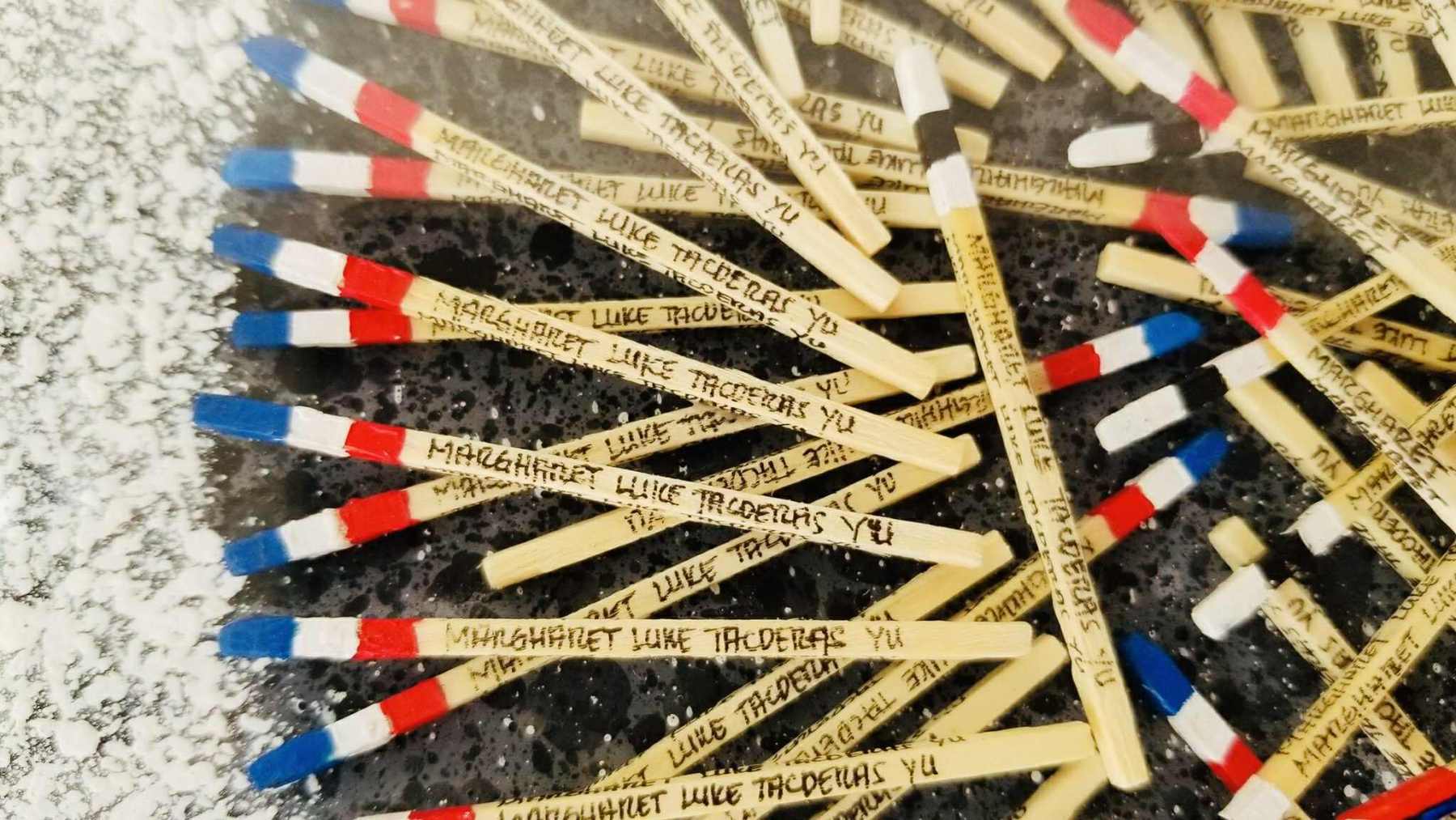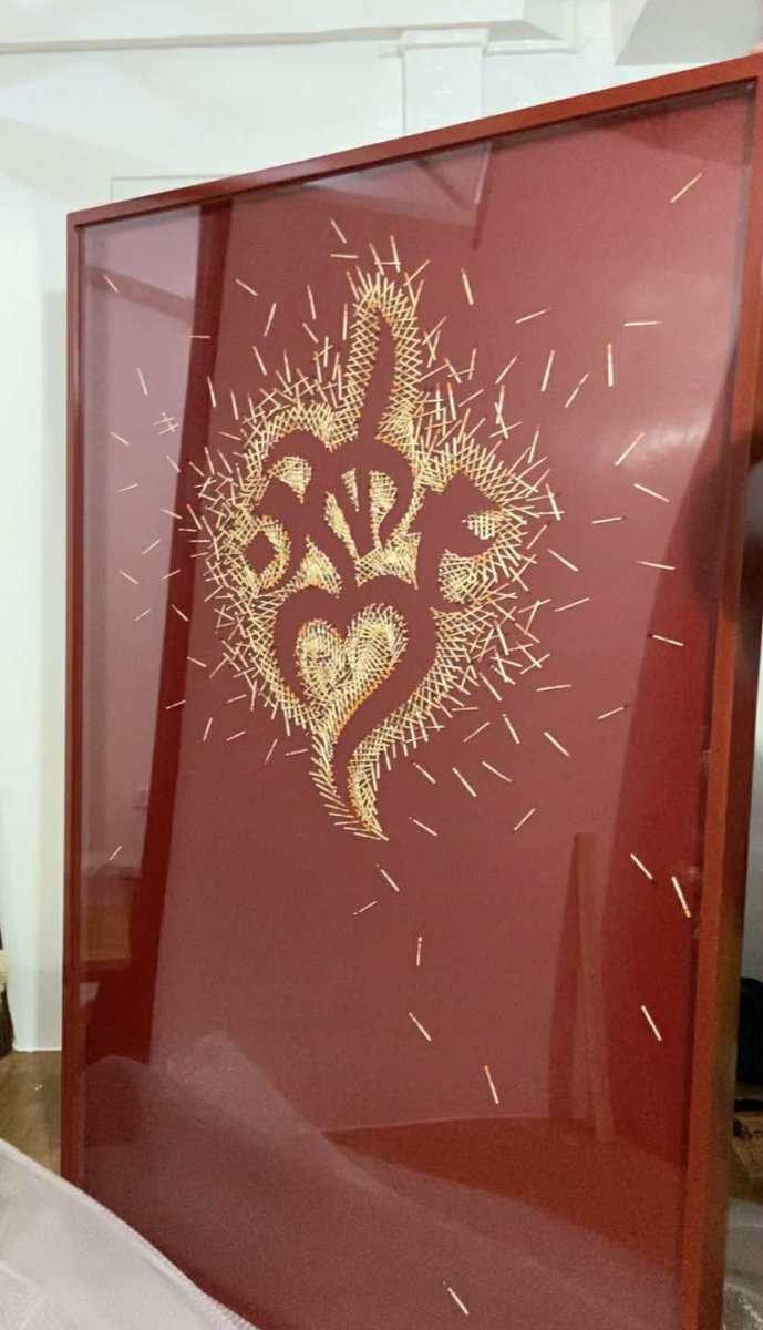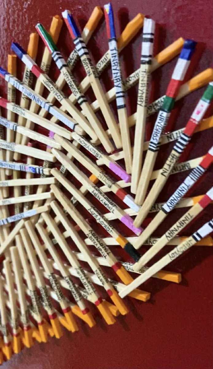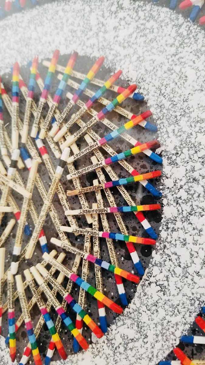 These are artwork pieces commisioned by collectors which have personal relevance on the owners. Written all over the matchsticks are names of their family members and the matchsticks are painted according to the country i visited in duration of the artwork. The process is integral to the outcome of the artwork. i would do a series of conversation about their personal experince of their familes experience and from that conversation i would present a study that simplifies our conversation into a sign or symbol that best represent their story.